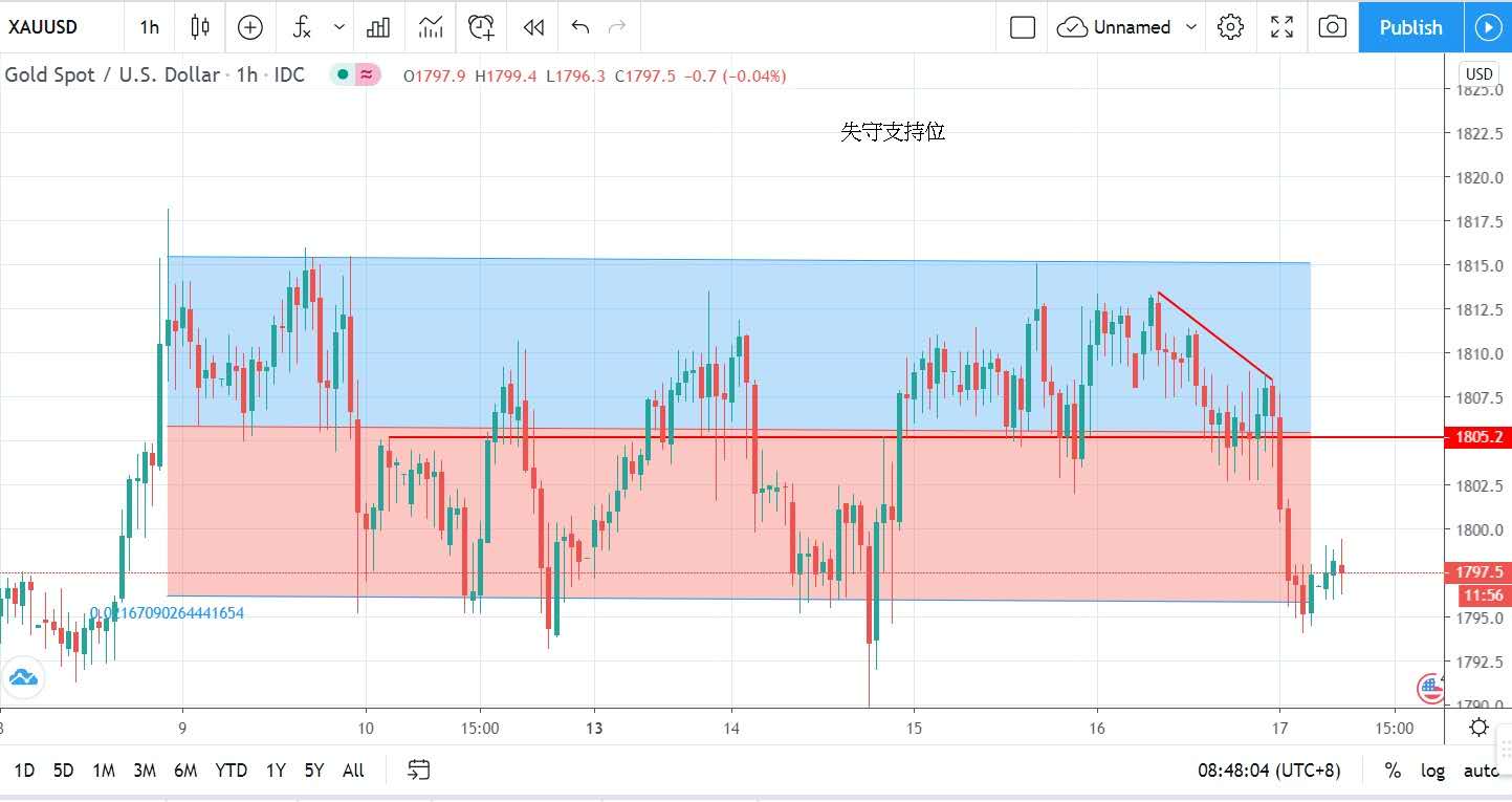 It shows that unemployment in the United States is still serious. After the data was released, the price of gold was still contending around $1,805 at the beginning. Under the upward pressure of the US dollar index, the price of gold was forced to fall, and finally it failed to hold this support point and fell sharply.