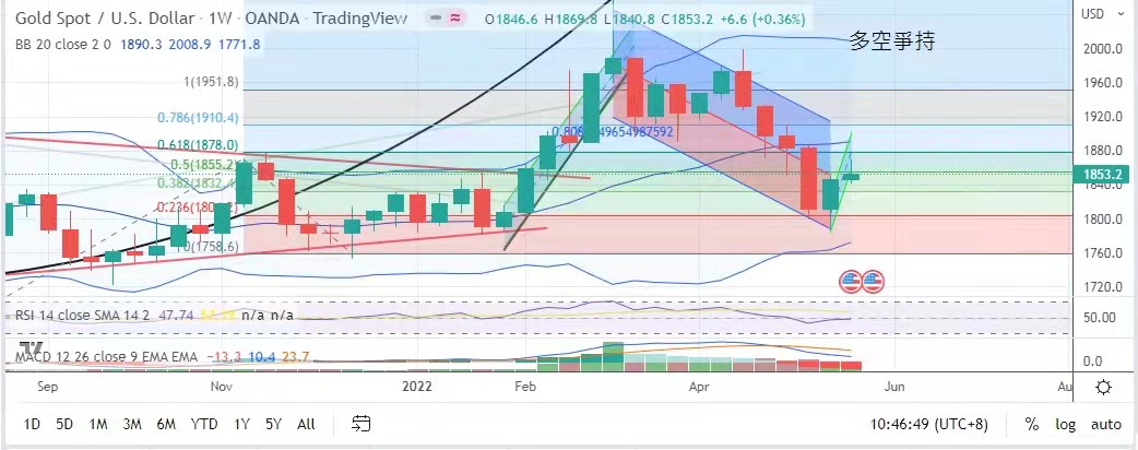 The composite index rose by 6.8%. Benefiting from the market's expectation that the inflation problem in the United States is still serious, and the economic performance may decline, the gold market rose at the beginning of the week, and the price of gold repeatedly tried to break through $1,870, but the bears refused to let it go and stayed with the United States.