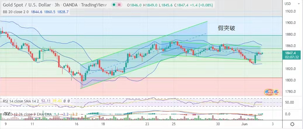 Raising interest rates ahead of schedule, which made the market's strong expectation for the US dollar slightly closed. The price of gold broke through yesterday, once falling below $1,830, and then quickly rebounded to $1,850. The gold price once again entered 1840-1870.