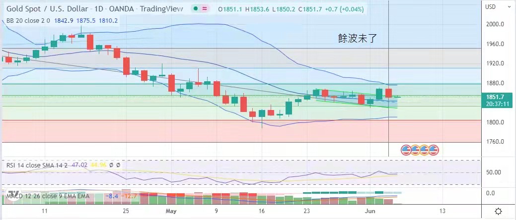 Inflation. The interest rate reflects the cost of holding gold, but the market is gradually digesting the rising interest rate. With the aftermath of inflation, it is expected that the price of gold will still fluctuate this week. Today's suggested volatility is $1847 to $1860.