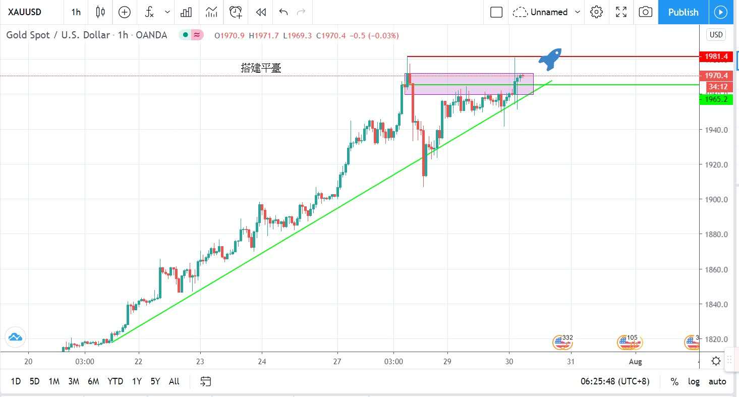 美元指數昨日最低曾見93.2點。美元疲弱,黃金受益,金價曾一度迫近1981美元的紀錄高位,但又被力壓至最低1941美元,最後以每盎司1,971美元收市,升12美元。