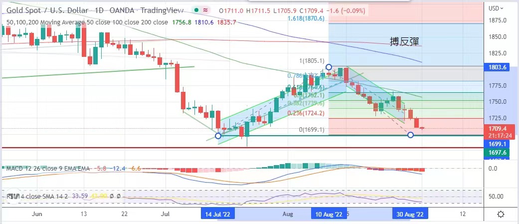 However, I am still worried that the Federal Reserve will take more aggressive measures to raise interest rates. The price of gold has always been under pressure and has not been able to get out of the downward trend. The highest price of gold is $1,726.6, and the lowest price is $1,709.7, with 17.