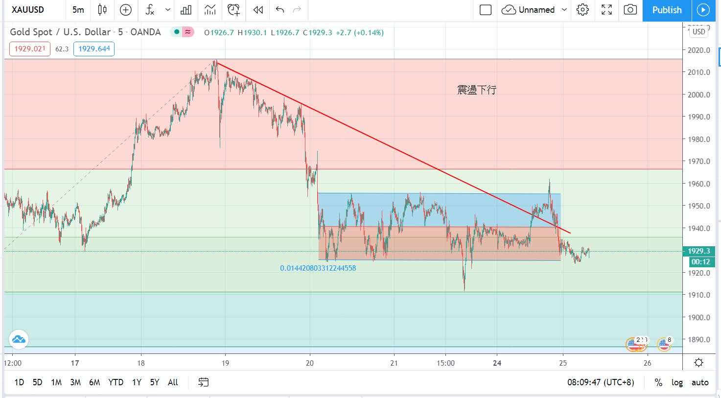 The price of gold fluctuated yesterday, with a volatility of US$ 35, and rose to yesterday's high of US$ 1,959 per ounce before the US market opened. However, due to the impact of the rising US stock market and the strengthening of the US dollar, the price of gold was rapidly pushed back to the US market of 1,924 per ounce.