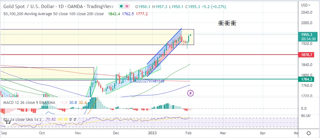 As expected, the Fed, subject to recent poor economic data, announced a 25-point rate hike this morning in order to avoid a hard landing by pushing too hard. After the meeting, Powell softened his words and said after the meeting that there would be a pause in rate hikes this year, which immediately set off a shock in the market. Gold hit $1,950 and edged closer to the $2,000 mark. Today's recommended range is $1,948 to $1,960.