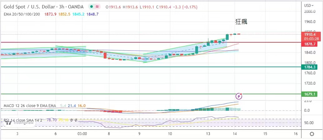 The opening gold price has hit $1,900, as high as $1,894.7! In addition, the market speculates that the Fed, considering that the interest rate hike policy may trigger more bankruptcies of financial institutions,
