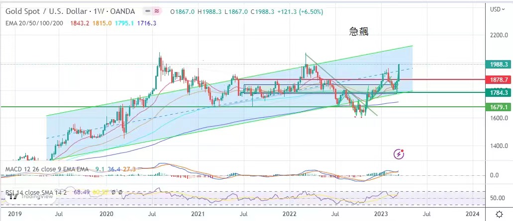 Despite the financial turmoil, the market is still wary, and safe-haven funds pushed the gold market to close at $1988.3, the highest level in nearly 11 months, with a star.