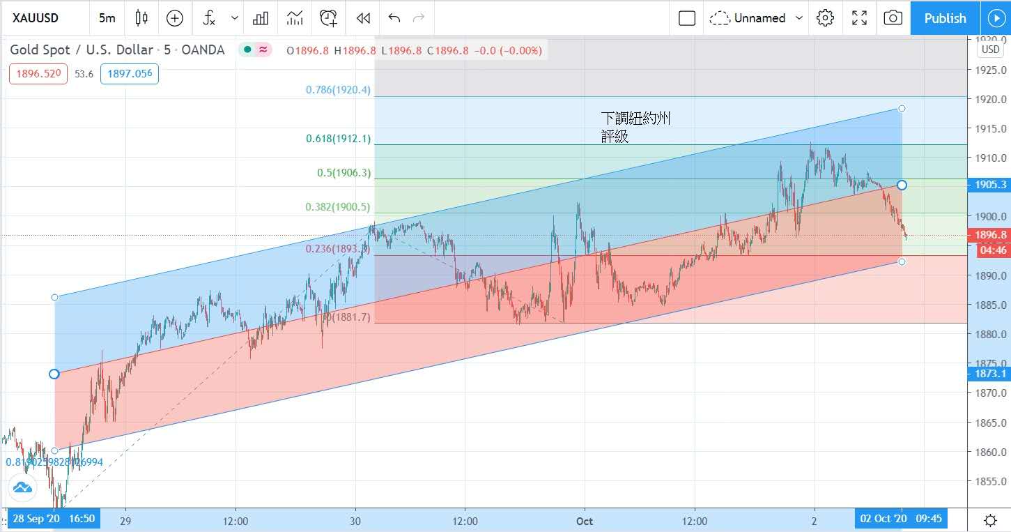 昨日金價單邊上升,在開市早段牛皮了三小時後開始上漲,終於在進入歐市時升穿每盎司1900美元水平,高位見每盎司1913美元,
