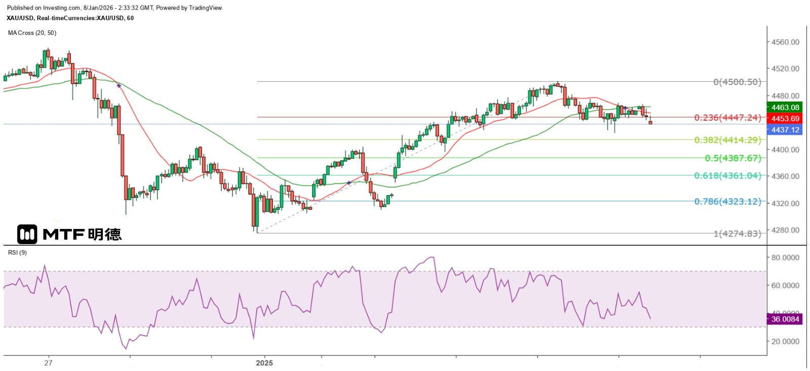 On the other hand, gold prices formed a double top at $4,404 on December 30 and January 2. It is expected that there will be a struggle for gold prices to fall below $4,400 within the day, but $4,460 is likely to be the resistance for the intraday rebound. Gold prices are expected to be trapped in a range of $4,460 to $4,410, but the overall trend remains weak.