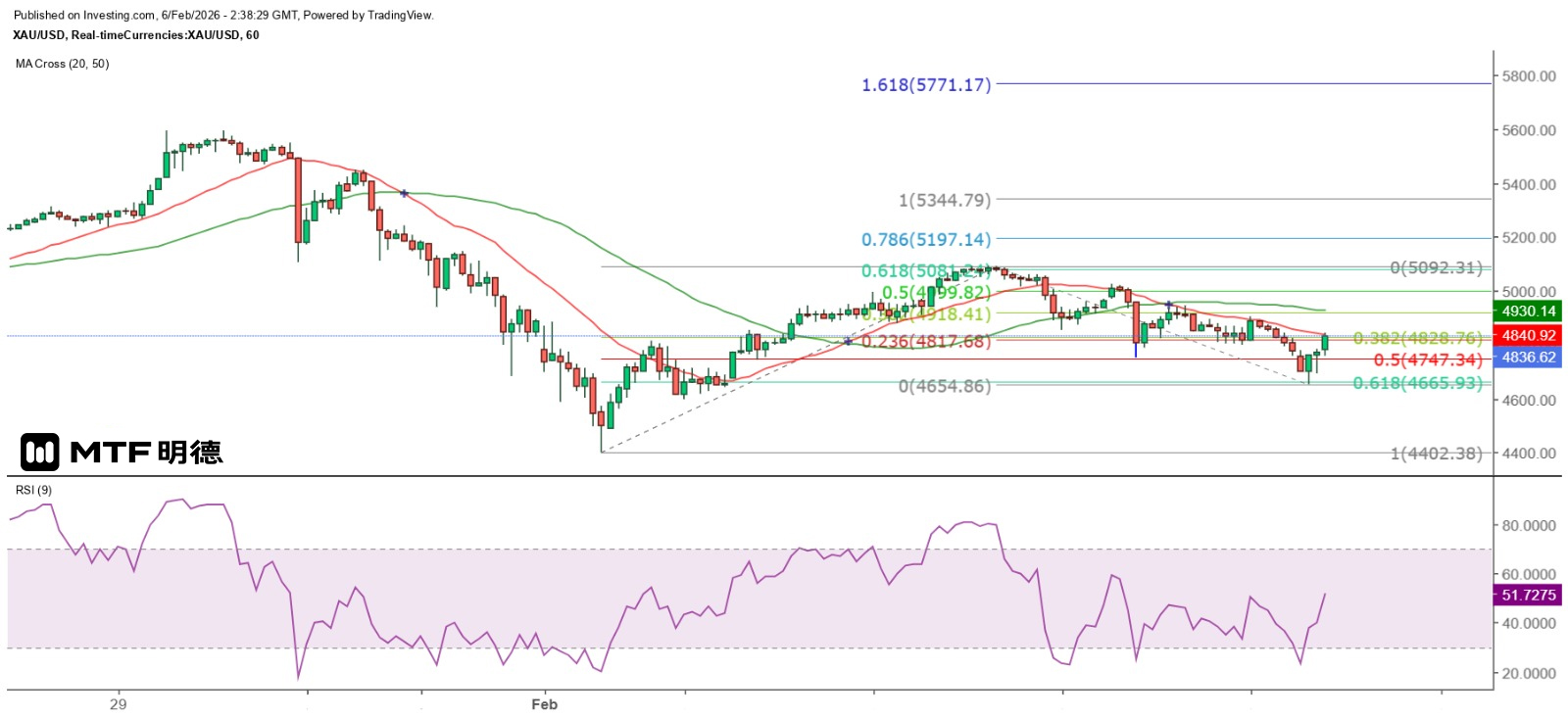 From the hourly chart, the low point of the gold price adjustment yesterday has slightly fallen below the 61.8% retracement level of the largest increase since February 2nd. Subsequently, a rebound wave has emerged, indicating that the short-term adjustment is likely to have ended. If analyzed with the wave theory, the gold price may have completed the second wave adjustment. Assuming that the third wave is 1.618 times the first wave, the gold price could rise to $5,771.17. Even if calculated at a simple 1:1 ratio, the gold price could still rise to $5,344.79.
