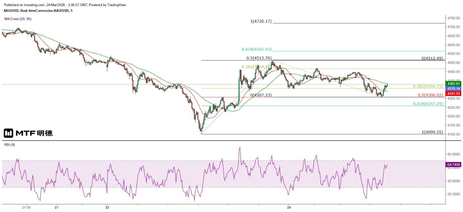 It was pointed out yesterday that investors should wait for gold prices to stabilize above the 50SMA on the 5-minute chart (currently around 4387) before making a purchase. The gold price broke through this line near the midday of Europe yesterday, and after briefly dipping below it, it held above it again. Before the opening of the New York market, it rose sharply to 4462.65 US dollars, and then rose repeatedly along the 50SMA, reaching a high of 4512.49 US dollars before encountering resistance and falling back.