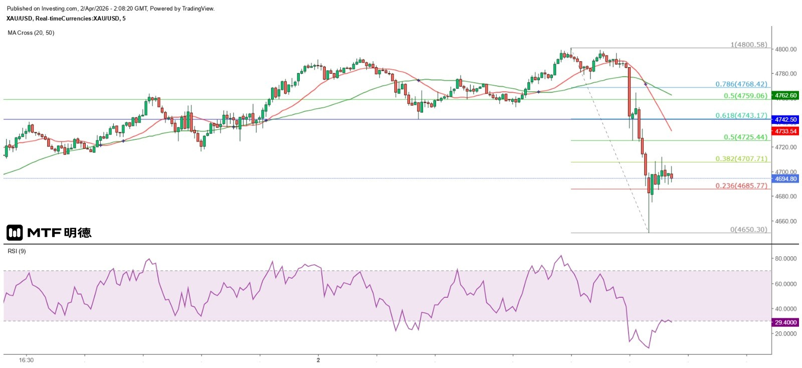 From different timeframes, gold prices have been supported and met resistance at various moving averages. As seen on the hourly chart, after testing the 20SMA (currently around 4751.5), the price rebounded strongly. On the 1-minute chart, the price has regained its footing above the 20SMA (4697) and has even challenged the 50SMA (4709). Therefore, it is expected that the 50SMA will be broken through within the day, with the major resistance seen at $4742.5. From the daily chart, today's high has broken through the 20SMA (4783.8), suggesting that in the short term, the price will likely remain above the 20-day SMA or $4810 (with a high chance of breaking through after consolidation), while the 20SMA on the hourly chart or $4660 will serve as strong support. In summary, gold prices are expected to fluctuate within the range of $4660 to $4810 in the short term.