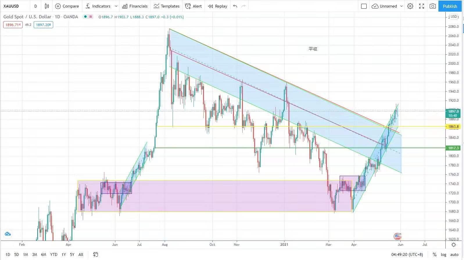 Although the relative strength index of gold is still overbought and closed flat yesterday, it still maintains its earlier view and the market outlook continues to be optimistic, but the adjustment range is still insufficient. At least that fed still insist that inflation is temporary,