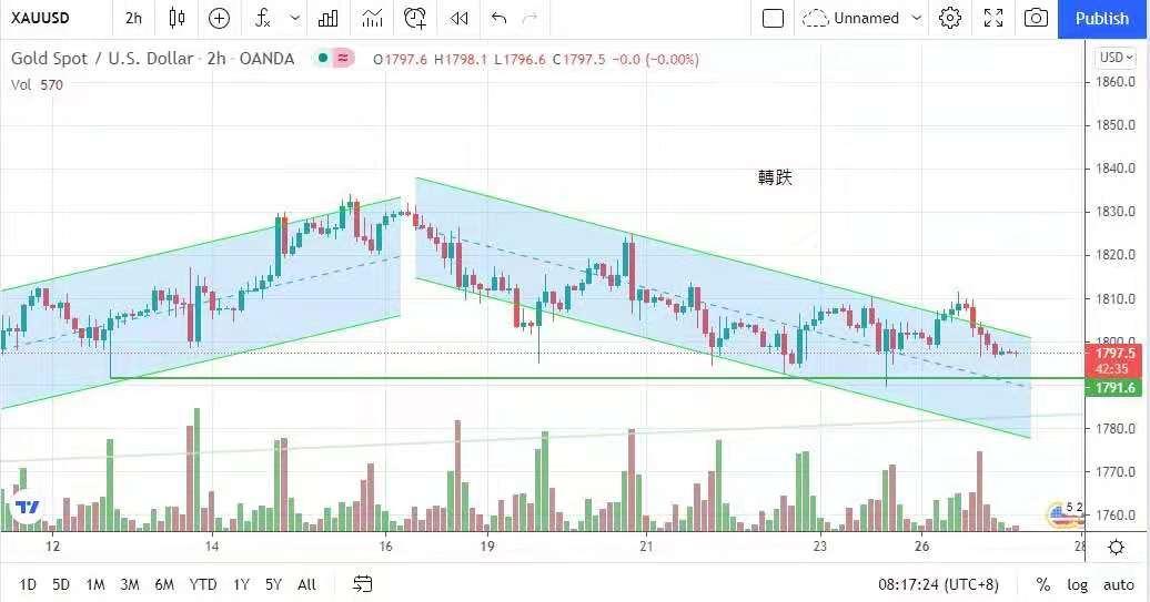 The highest rose to $1,812, but in the US market, the rise in the yield of the US 10-year government bond stopped the gold market, and the gold price turned down, reaching a minimum of $1,796, but investors still waited for the Fed to announce at 2 am on Wednesday