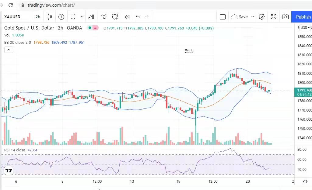 Yesterday, the price of gold failed to break through $1,800 again, and it seems that it lost momentum. It is expected that it will seek support downward today. Today's suggested volatility ranges from $1781 to $1792.