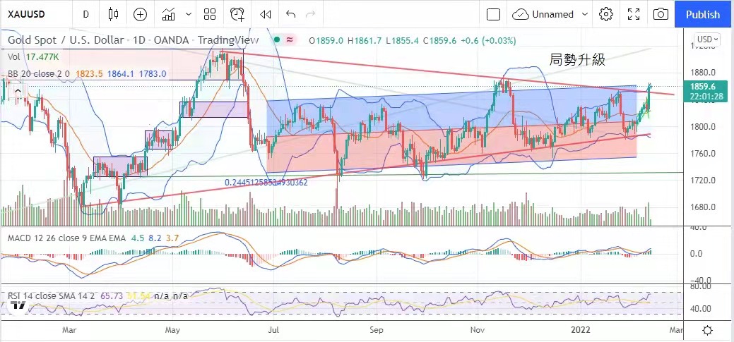 Gold hit a low of $1,821 after Sieblard supported an aggressive 50-point rate hike path in March. After that, a number of Fed officials came out to contradict Bullard's argument, and expectations of rate hikes cooled, gold resumed its rally.