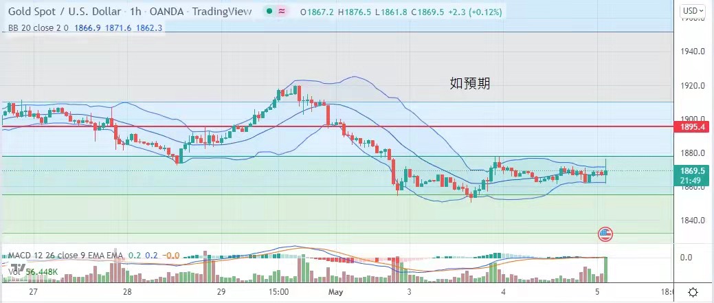 短期势必冲击1900水平。今日建议波幅1892美元至1910美元。