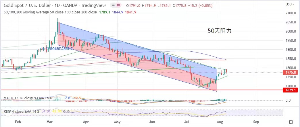 美国众议院议长佩洛西完成访台任务,在其逗留台湾期间,更会晤了台湾总统蔡英文,并提出保证,重申不会背弃对台湾的承诺。佩洛西的行为挑起中方的巨大反应,我国解放军在佩洛西离台后即执行「围岛三天」的实弹演集,传媒甚至报导有导弹越过台北上空。市场关注中方会否步俄罗斯后尘,由军事演习变成军事行动,部署解放军在日内攻台,趁机收复台湾。上周金价最低见1758.4美元,金市藉台海局势升温,最高升逾1795美元,但非农数据表现优于预期,在周五回吐大部份升幅,最终以1775.8美元收市,以一星期计算,仍升9.5美元。