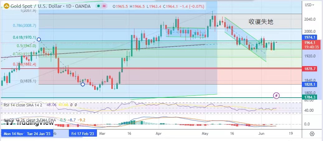 的通胀数据及美联储议息,预料金市仍将在1940至1970美元之间波动。今日建议波幅于1954美元至1970美元。