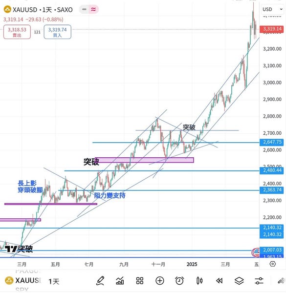复活节长假后,金价马力全开,周一甫开市便再突破3400关口,比前周又再劲升过百美元,市场动力十足。投资者风险情绪相当高,风吹草动便吸引资金冲入金市避险,特朗普向美联储鲍威尔施压减息,称他太迟先生,市场担心特朗普会辞退鲍威尔,影响美联储独立性,美元美债的避险功能已削减,黄金受追捧至3500美元,再创历史新高,期后辗转回吐。