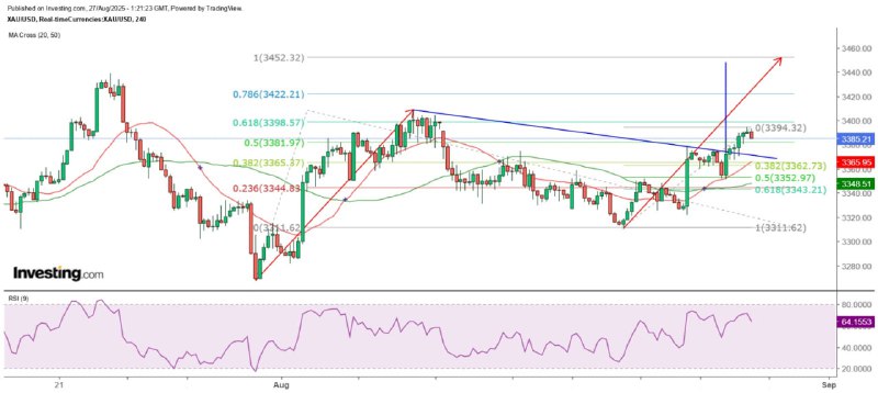 《金价料升至3450美元才受阻》27/8/2025 9:21 完稿