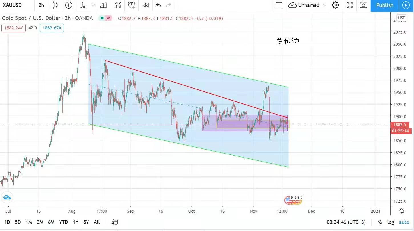 美元持续低迷,美元指数下跌0.1%,收报92.4点。金价亦偏软,最高曾见每盎司1894美元,但后市乏力,跌至每盎司1877喘定,最终以每盎司1880美元报收,