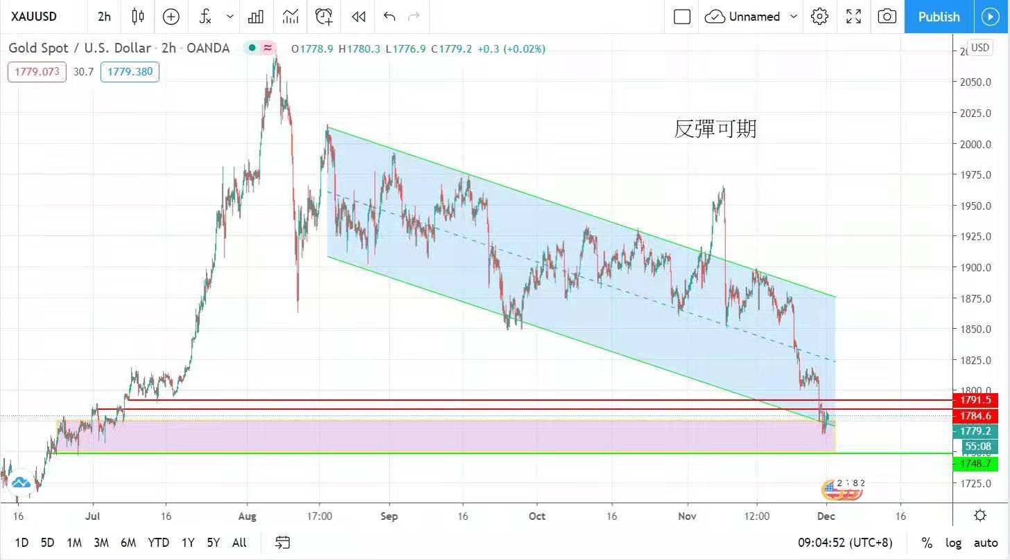 最差跌至昨日提及的长线技资者人场价的1764美元即快速反弹。虽然黄金暂时受疫苗消息打压,但在全世界央行实施量化宽松,与及持续低息的环境下,待疫苗消息被消化后,