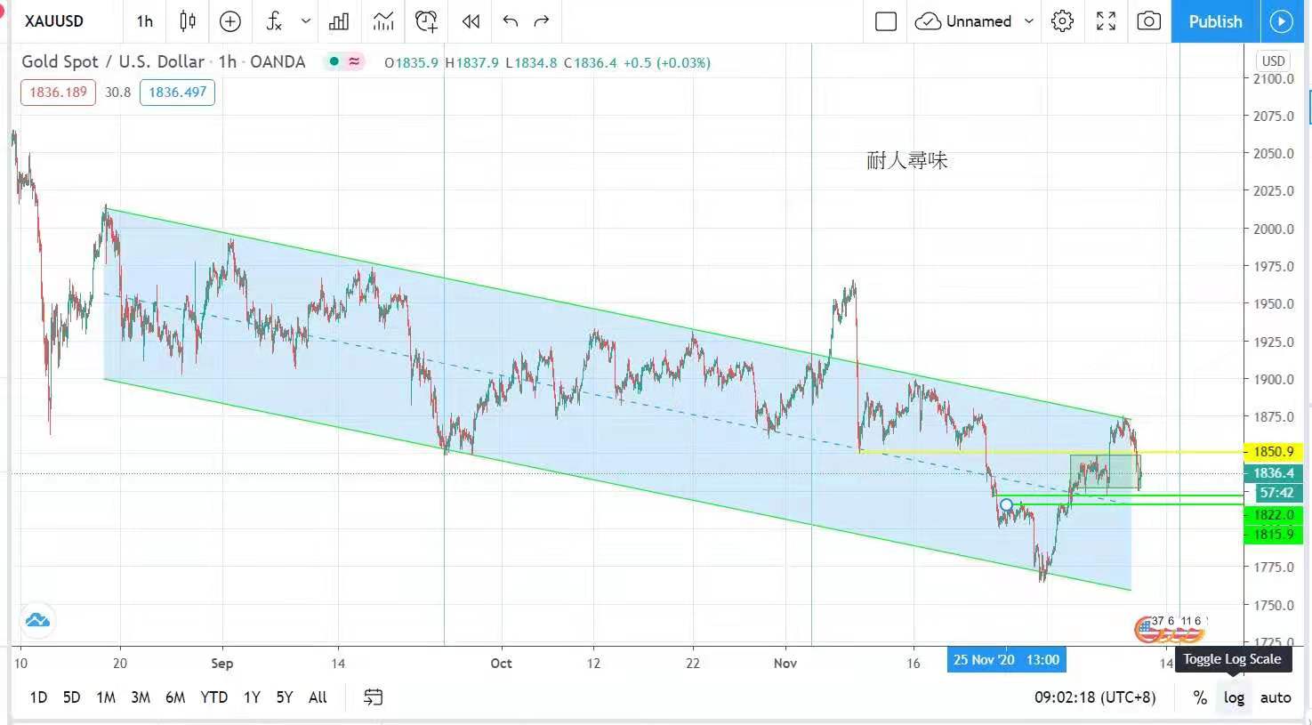 市场预期乐观气氛转差,加上美股下跌引发资金流向美元避险,美元指数转强,昨日金价大幅回调,金价昨日最低见每盎司1825美元,收报每盎司1840美元报收,下跌30美元。