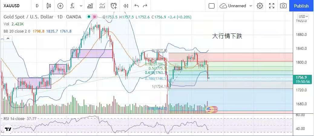 黄金昨日大行情下跌,强劲零售销售支持美元反弹,美国10年期国债孳息率进一步上升,金价受压下跌,金价低试8月9日大调整之后的一波反弹的回调状况,昨日金价跌近黄金比率0.786即1746美元左右才有回弹,后市走势仍弱,今日纵使反弹仍会受制于1766美元,较宜在高位作空。今日建议波幅在1746-1767美元之间。