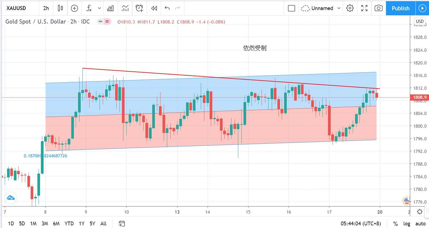 最終收報每盎司1810美元,仍升12美元。