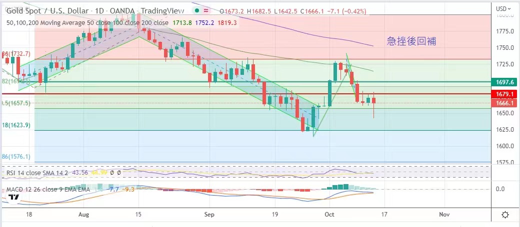 反映市場過份反應。其實技資者普遍接受美聯儲在下月加息75點子的現實,相信金價雖然承壓,但可能要在下次數議