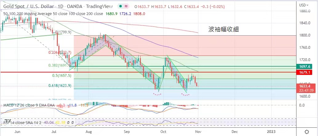 在即,美元指數重上111水平,金價最高見1645.7美元,最低見1631.8美元,收於以1633.7美元收市,跌10.6美元。