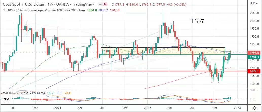 過市場預期,聯儲局加息壓力引發市場負面情緒,金價在上周低見1765.9,但市場憂慮全球經濟陷衰退,美股下跌,