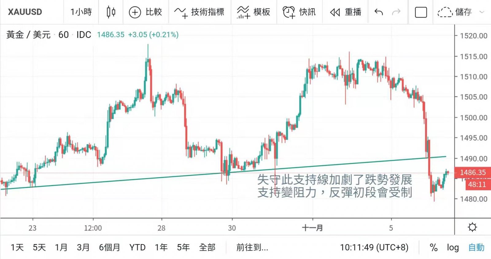 技術上金價略呈超賣,有反彈修正需求,但上方反彈至1488至1492區間會預上阻力,1480支持需要企穩,始能進一步上揚。