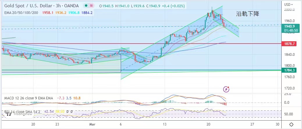 市早段上升,最高見1985.2美元,然而投資者關注周四凌晨美聯儲公布議息結果,多頭投資者趁高計數離場,金