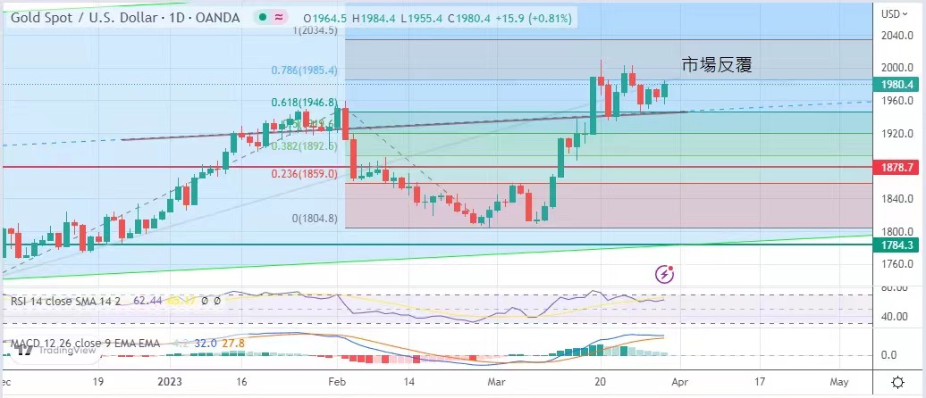 指數升0.55%,納斯達克綜合指數升0.73%。銀行業倒閉危機逐步舒緩,金市在亞時早段承接早日跌勢,最低跌至