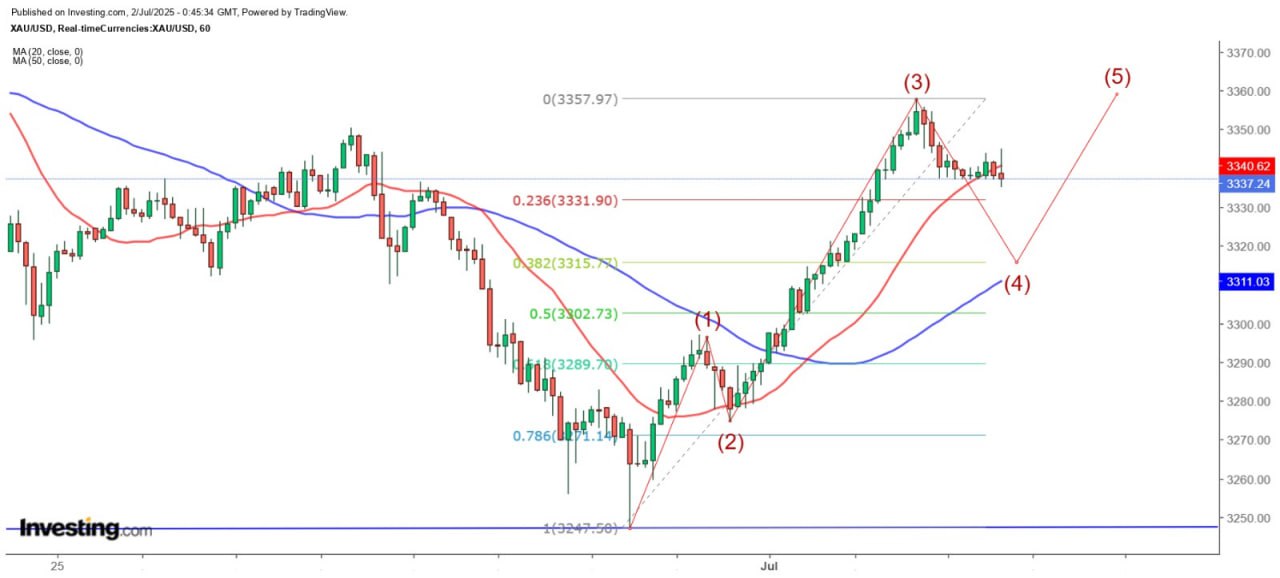 短線而言,金價既已重新守穩3300美元,該位料再度成為即市調整的重要支持位,短期有望維持在該位以上波動,金價日內若再次挑戰該位,慎防呈雙頂回落。從小時圖觀察,金價已達到3浪的基本升幅,現處4浪調整,3315美元為下調目標,較深的調整可至3302.7美元,而3358美元可暫視為5浪上升目標,惟即使上破該位亦很可能呈雙頂回落,故料金價短期將呈先跌後升走勢。