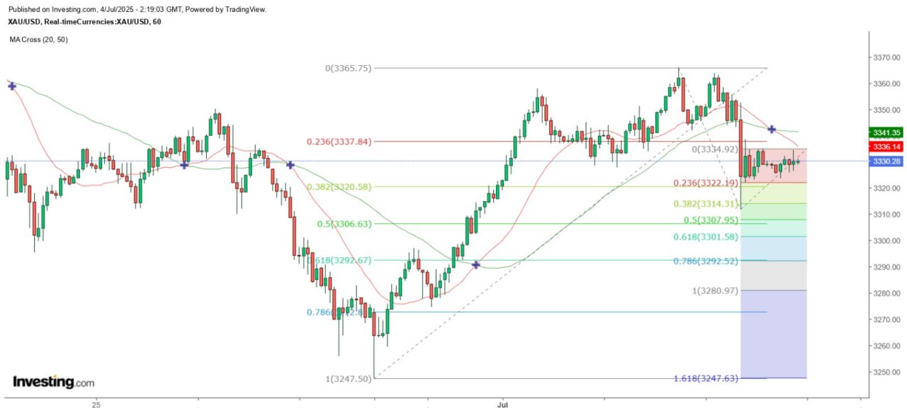 昨天現貨金價急挫後在3322美元以上回穩,但多次上試3335美元皆未能成功突破,今早在亞洲市早段最高僅見 3334.4美元。從小時圖觀察,3352.45美元顯然成為短期最大反彈阻力,而昨天的低位3311.8美元,在聯儲局7月份減息無望的預期下,金價短線極其量在3320至3344美元之間上落,一旦向下突破3311.8美元,預料將測試3306及3292美元。