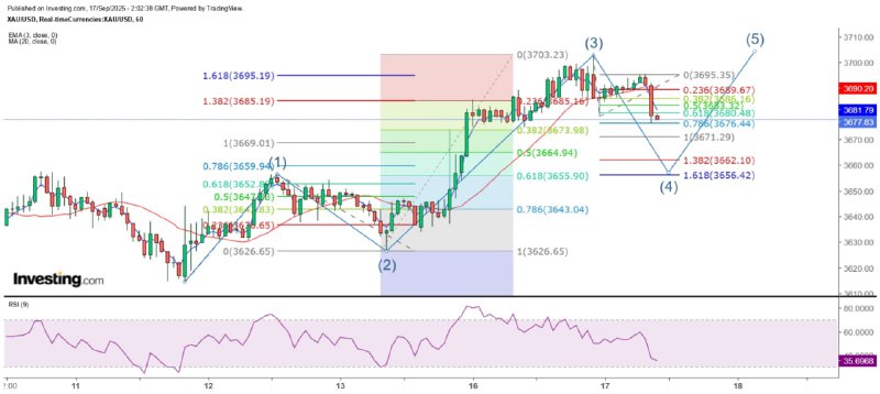 《金價4浪調整指向3656美元》17/9/2025 10:02 完稿