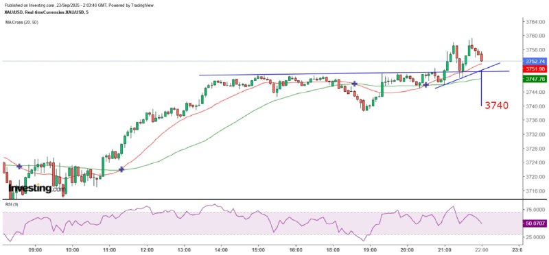 短線而言,金價今早持續創新高至3759.18美元後急跌,最低跌至3747.96美元,並曾試穿5分鐘圖的20SMA(現約3749.38),隨後金價再度反彈。從5分鐘圖可見,約3749美元為前橫行區頂,金價目前仍處於20SMA之上,故須連續三支陰陽燭收低於該線,且證明3749美元已經失守才可考慮沽出。從小時圖觀察,金價仍然維持自昨晚9時出現穿頭破腳後開始的上升趨勢,且與20SMA保持平衡,若想採取沽貨行動,必須待金價收低於3745.88美元,又或明顯失守20SMA才可考慮。