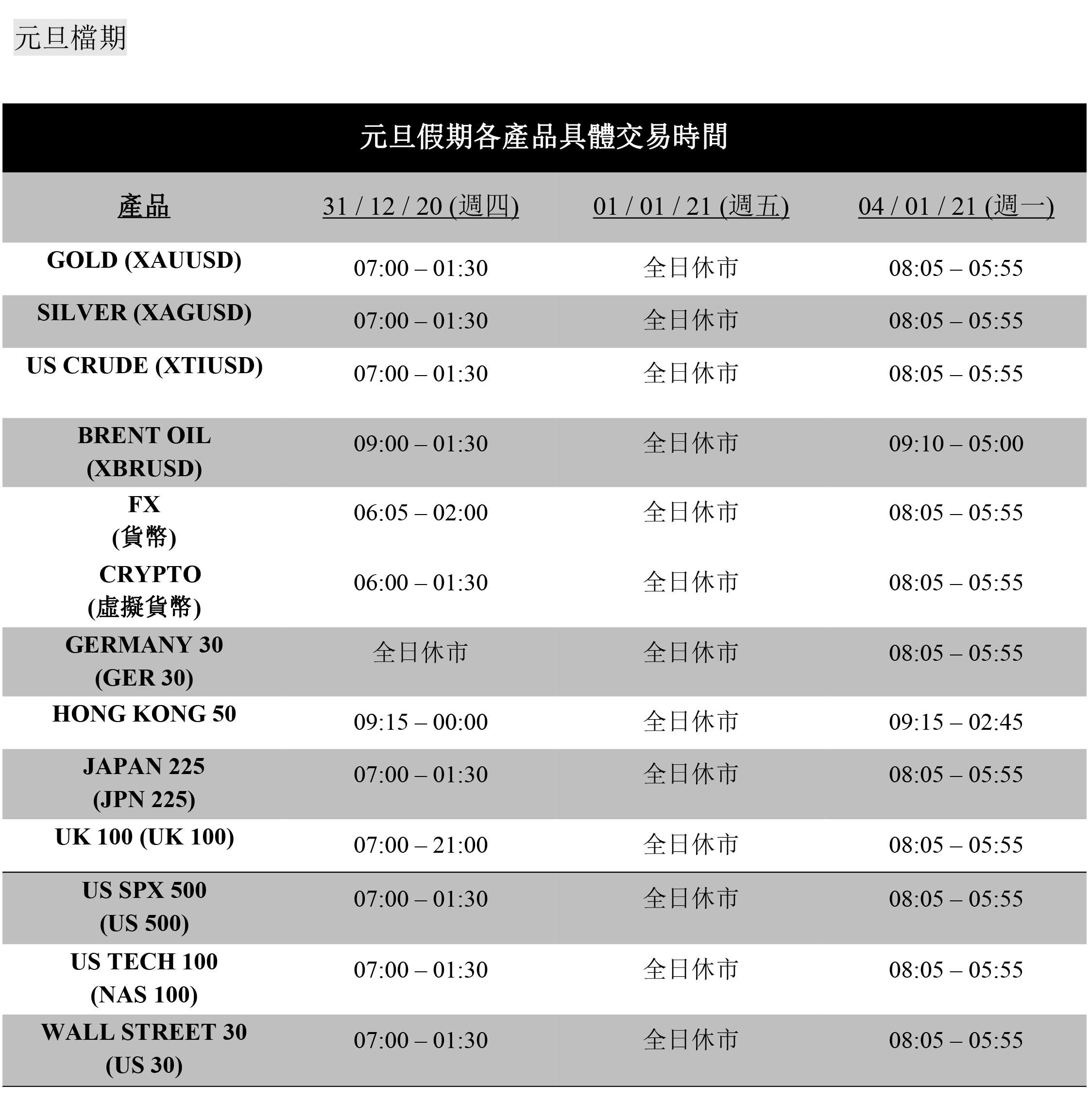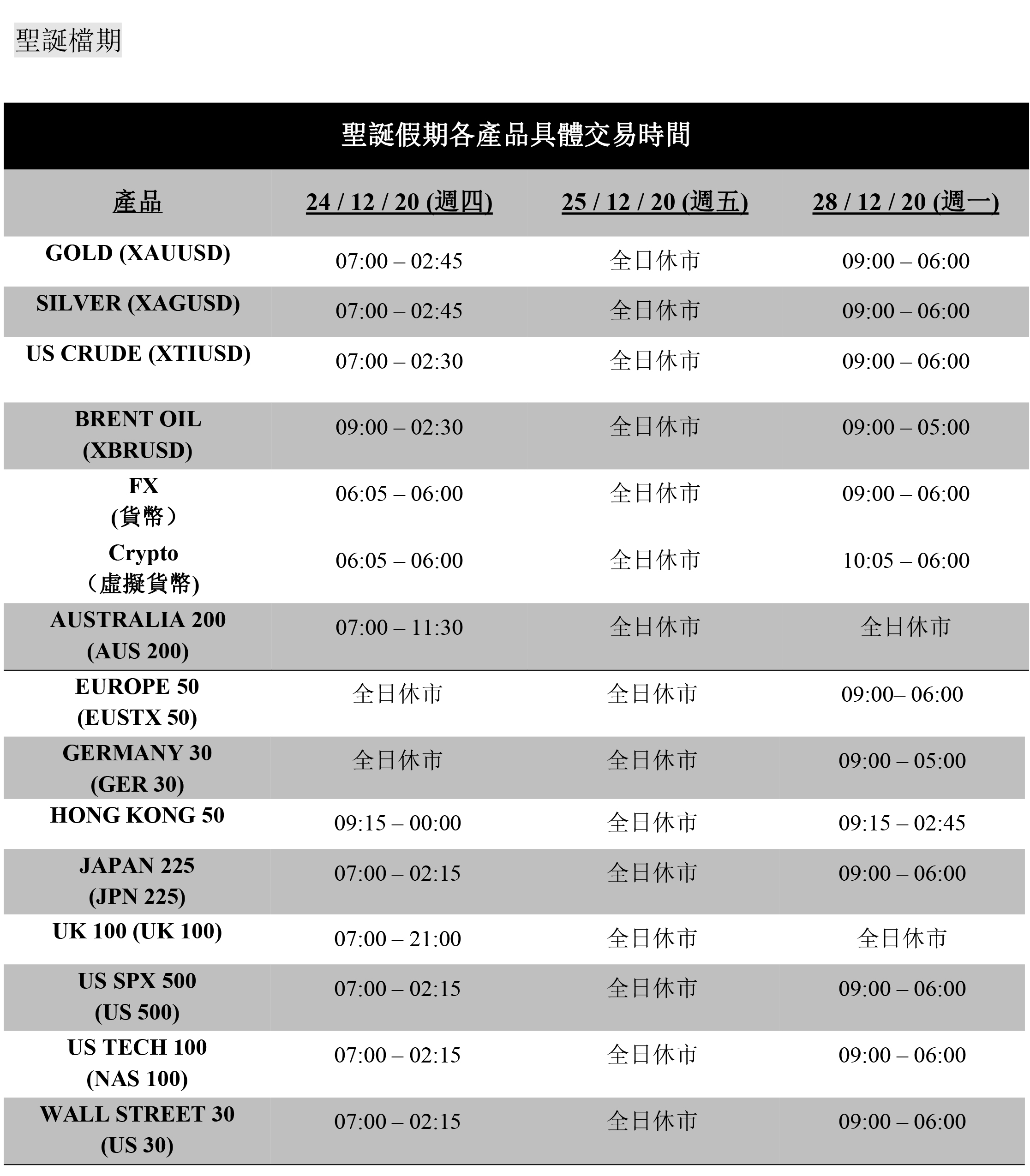 尊敬的客戶: 請注意,由於聖誕節和元旦假期即將來臨,屆時全球主要金融市場將休市, 明德金融部分商品交易時間有所變動,