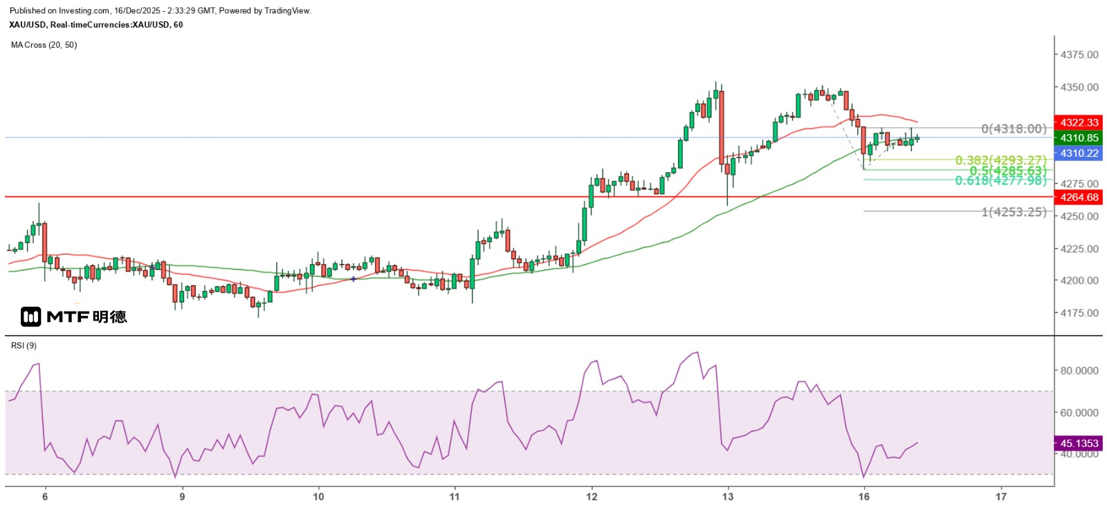 《金價呈雙頂短期沽壓增》16/12/2025 10:32 完稿