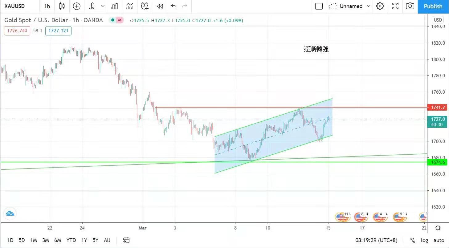 金價多番下試1700美元而不破,走勢似已逐漸轉強,黃金現階段可能仍在區間震盪,試圖突1740美元。