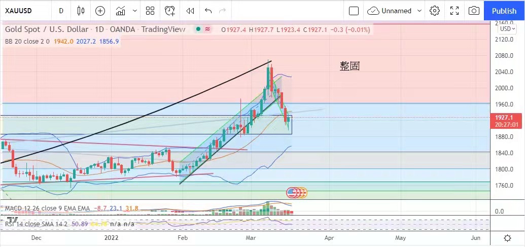 2%需要更長的時間,卻有利金價上行。金價昨日試穿1900美元但急彈,似乎已守穩並進入整固期。今日建議波幅1914美元至1935美元。