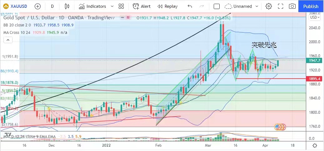 美元。今日維持昨日建議波幅1934美元至1958美元。